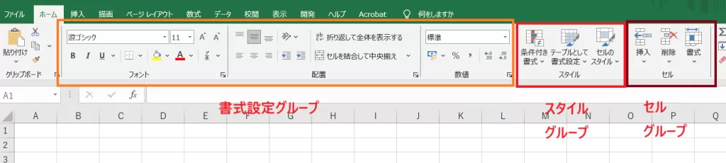 ①「書式設定」グループ